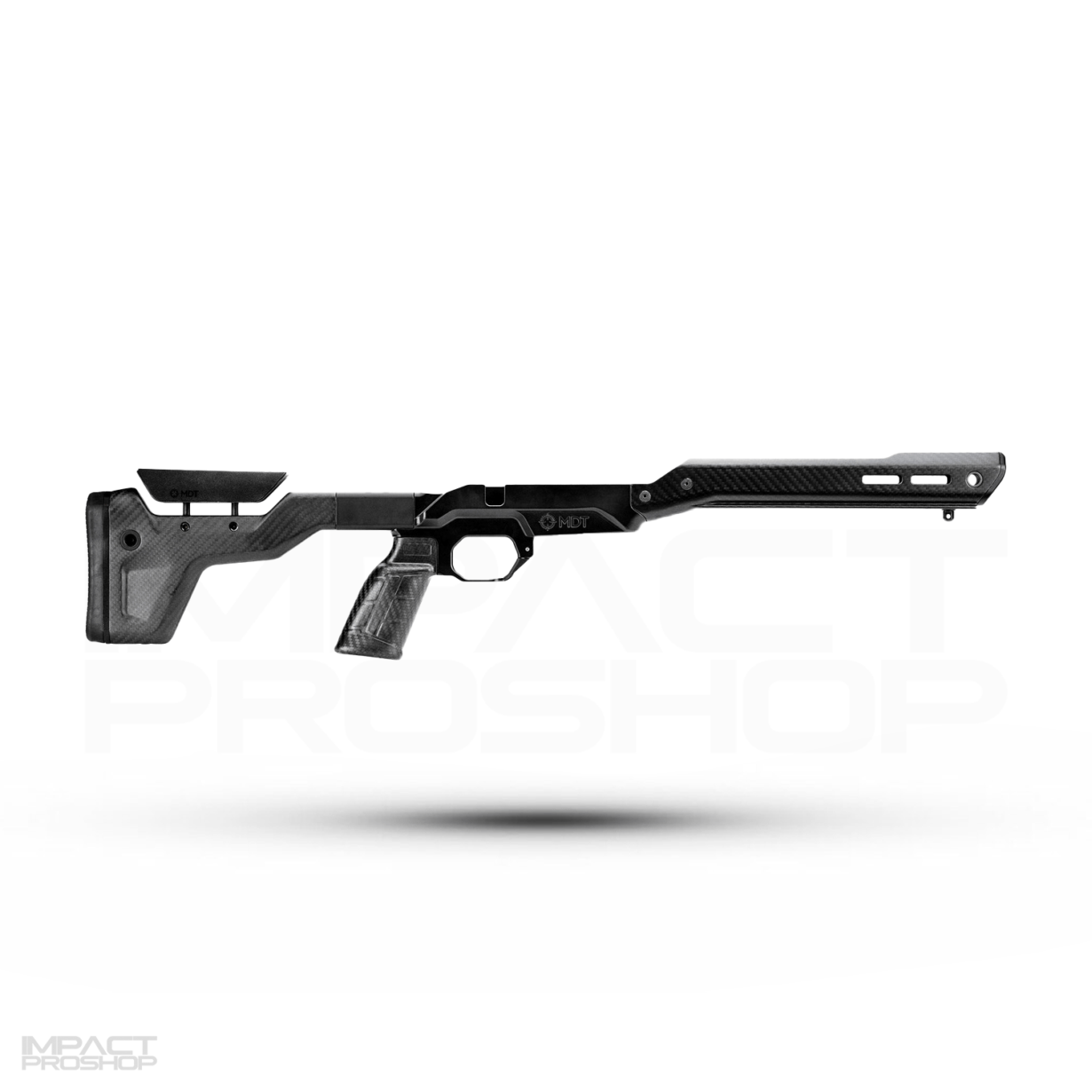 MDT’s first purpose-built hunting chassis. Made with lightweight carbon fiber, with folding stock and ARCA forend options. Weighing in starting at 26oz (for chassis stock, buttstock, forend and pistol grip combined), this is the most ultra-light rifle chassis on the market.