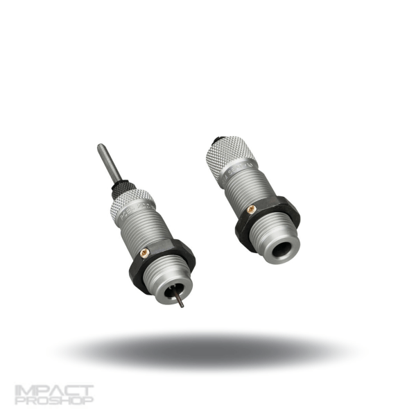 This two-die set is intended for reloading bottleneck cases, and consists of a Full-Length Sizer Die with an Expander-Decapping Unit, and a Seater Die with Bullet Seater Plug. The Full-Length Sizer Die brings the case to SAAMI minimum cartridge dimensions. It sizes the outside of the case, de-primes and expands the neck to accept the bullet. The die has vents to prevent case damage caused by trapped air and for excessive lubricant. Headspace is held to minimum tolerances to avoid changing the case body length during full length sizing. The included Seater Die has a built-in roll crimper to secure the bullet at the same time as it’s seated.